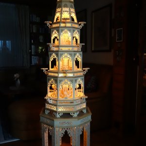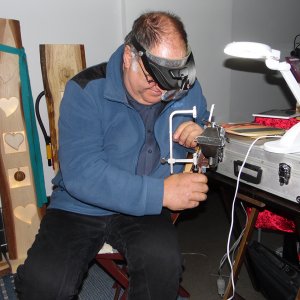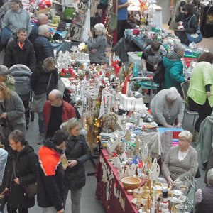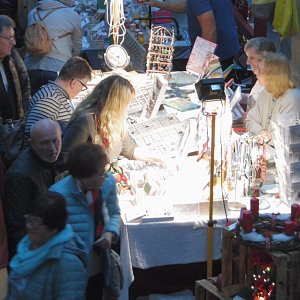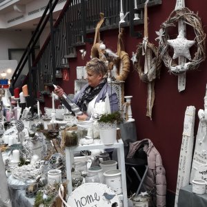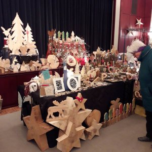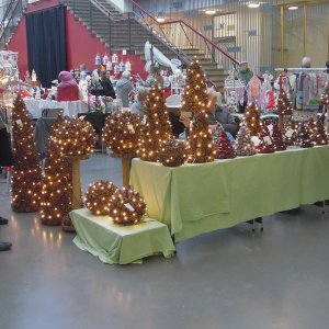 Auch heute trifft sich regelmäßig ein Kreis von den Ahlener Hobbyhandwerkern im Stadtteilbüro und tauschen sich aus. Spannend ist das, was geboten wird. Neben den obligatorischen Dekorationen zu Weihnachten, die in jedem Jahr immer etwas variieren und gewissen modischen Trends ausgesetzt sind, gibt es Geschenke und Mitbringsel aus allen denkbaren Materialien und Wertstoffen, aus Stoff, Wolle, Metall, Glas, Porzellan, Papier, Kunststoffen und Holz. Wir haben einen Stamm von Anbietern, die regelmäßig dabei sind und das Gerüst bilden, aber gut ein Drittel der Anbieter sind neu und sorgen für einen einen neuen Schwung, da sind sich die Organisatoren sicher. Als besonderes Highlight gelten in diesem Jahr, die "mannshohen", selbstgemachten Weiihnachtspyramiden, die eigentich im Erzgebirge zuhause sind. Bernhard Tiewes aus Ahlen hat diese Leidenschaft und baut akribisch, dabei nutzt er die physikalischen Kräfte und zündet die Kerzen an, so dass die ganze Pyramide leicht in Schwung gerät und sich dreht
