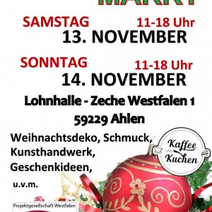 Nach langer Pause startet der Adventsmarkt in Ahlen wieder durch. In der Lohnhalle der Zeche Westfalen geben sich über 2 Tage lang die Kreativen die Klinke in die Hand, denn es gibt in der größten Ausstellungshalle im Kreis Warendorf, der Lohnhalle und der Waschkaue, viele Angebote zu bewundern. "Wir haben fast 50 Anbieter, die aus der Region kommen", freut sich Hermann Huerkamp auf die Veranstaltung. Am Samstag, den 13.11. und Sonntag, 14.11.2021 jeweils in der Zeit von 11 bis 18 Uhr wird der Markt geöffnet. Die coronabdingten Regeln werden im Eingangsbereich entsprechend eingehalten und kontrolliert. Zur Anwendung wird die sogenannte 3 - G -Regel kommen, allseits bekannt, allerdings soll auch das Raumvolumen von den beiden Hallen ausgenutzt werden und die Stände mit größerem Abstand zueinander stehen, so Celine Vogt vom Stadtteilbüro, die mit der erfahrenen Christa Wolf zusammen, die Stände anordnet. Christa Wolf lebt im Stadtteil und hat vor gut 20 Jahren den ersten Basar im Stadtteilbüro am Glückaufplatz durchgeführt.